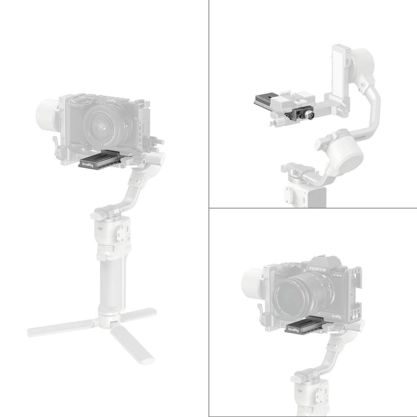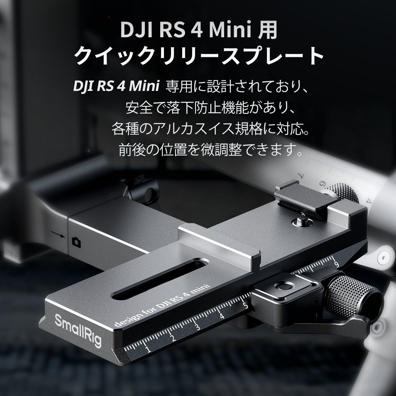 DJI RS 4 Mini 用クイックリリースプレート5336は、三脚とスタビライザーのセットアップを素早く切り替えることができ、撮影効率を最適化するように設計された専用プレートです。アルカスイス互換で、つまみねじを締めることで取り付けが可能です。落下防止機能も備えています。