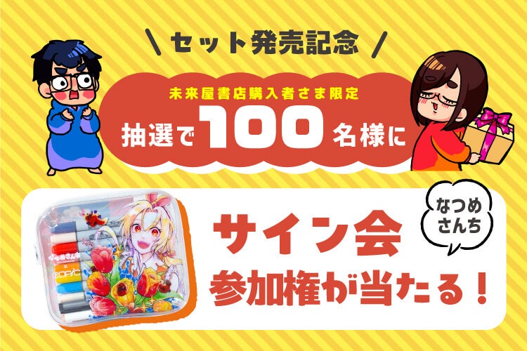 キャンペーンにお申し込みいただいた方のなかから抽選で100名様を、未来屋書店 木更津店で実施するなつめさんちのサイン会にご招待します!