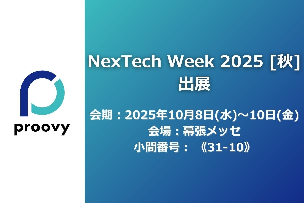 株式会社Recept(本社:東京都千代田区、代表取締役社長:中瀬 将健)は、2025年10月8日(水)から10日(金)まで幕張メッセで開催される「NexTech Week 2025 ~ 第6回 ブロックチェーン EXPO [秋] ~」に、当社の「proovy(プルービー)」を出展いたします。