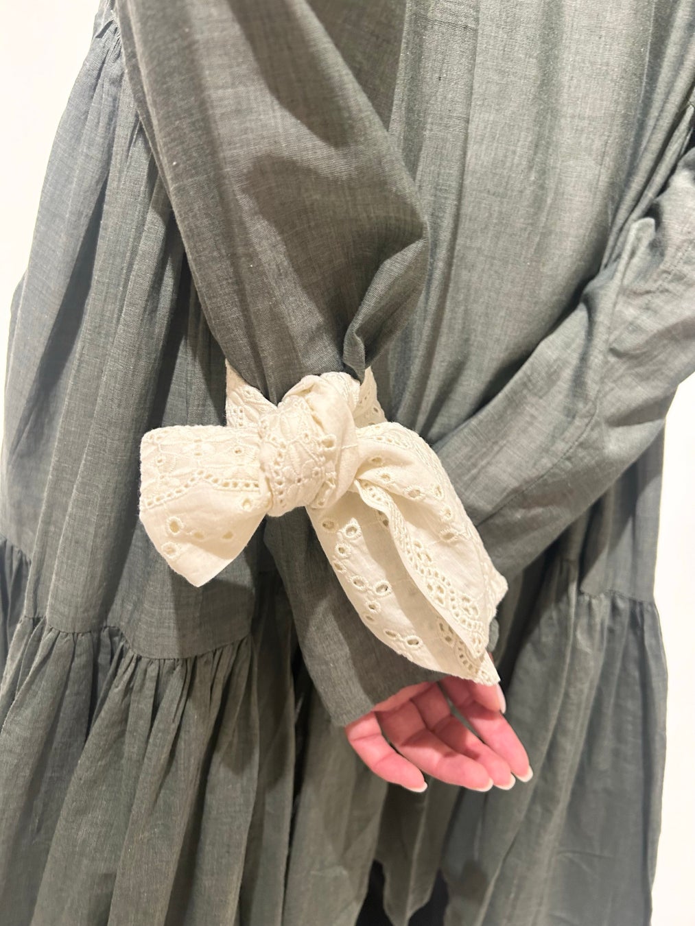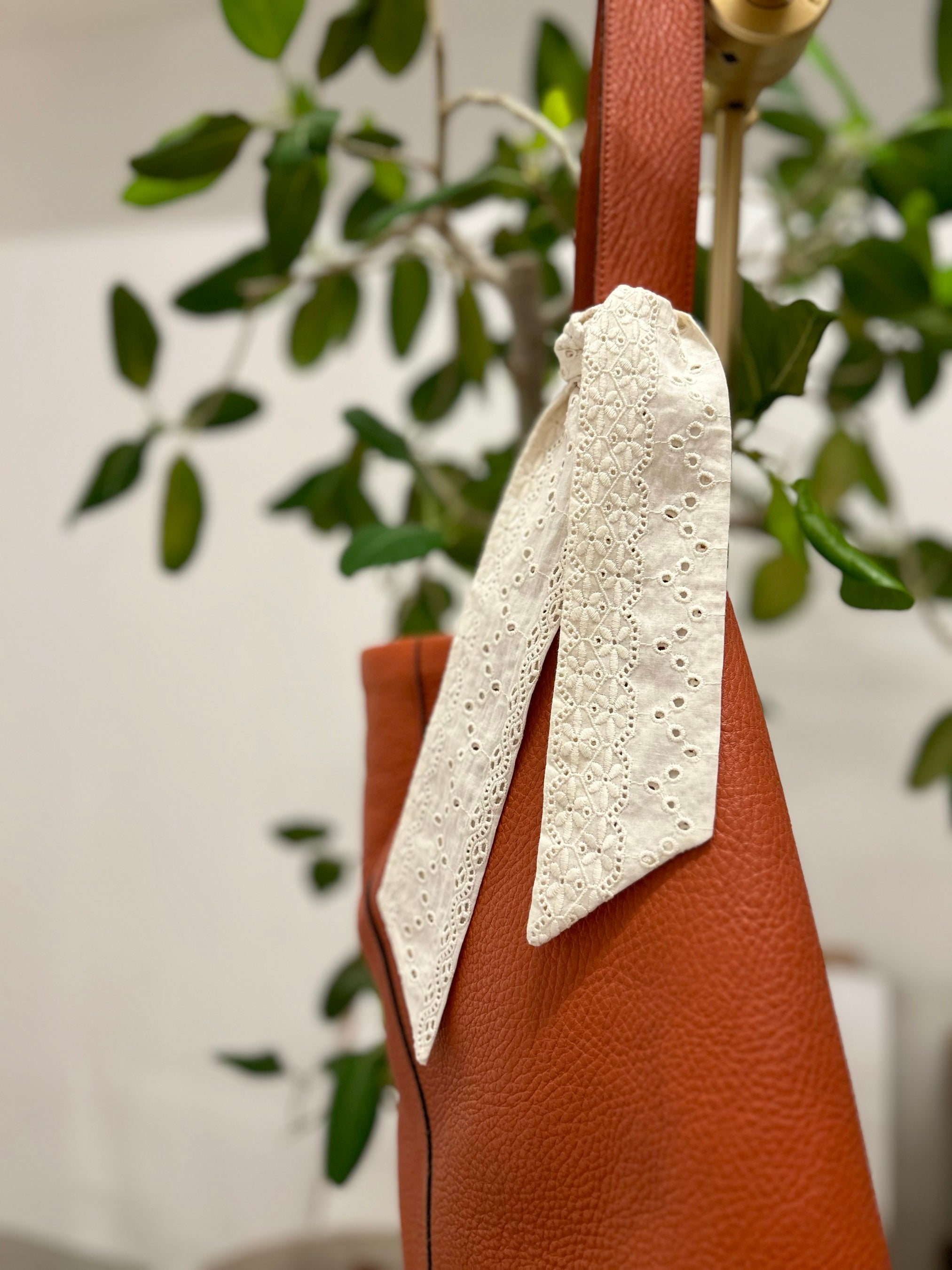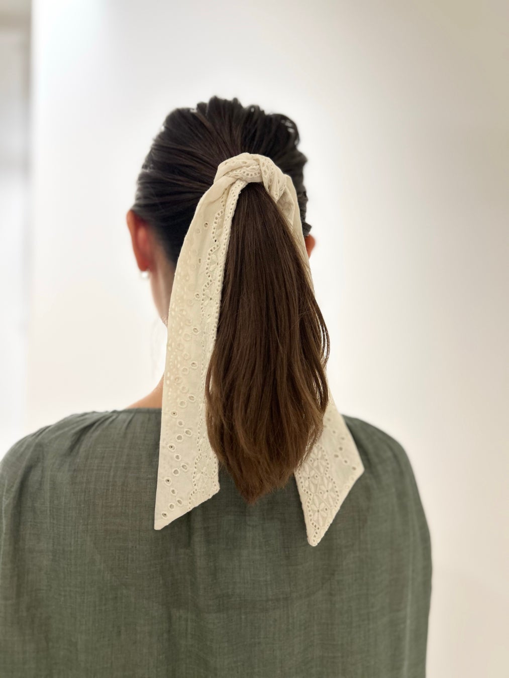 11月1日(金)12:00より、マーレット公式オンラインストアでお買い上げいただいた方全員に、オリジナルアイレットリボンをプレゼントいたします。マーレットのドレスやブラウスなどにも使用されているアイレットレースを使用したオフホワイトカラーのリボンは、ヘアアレンジに使用したり、コーディネートやバッグのポイントなどにお使いいただけます。こちらは数量限定のため、なくなり次第終了とさせていただきます。