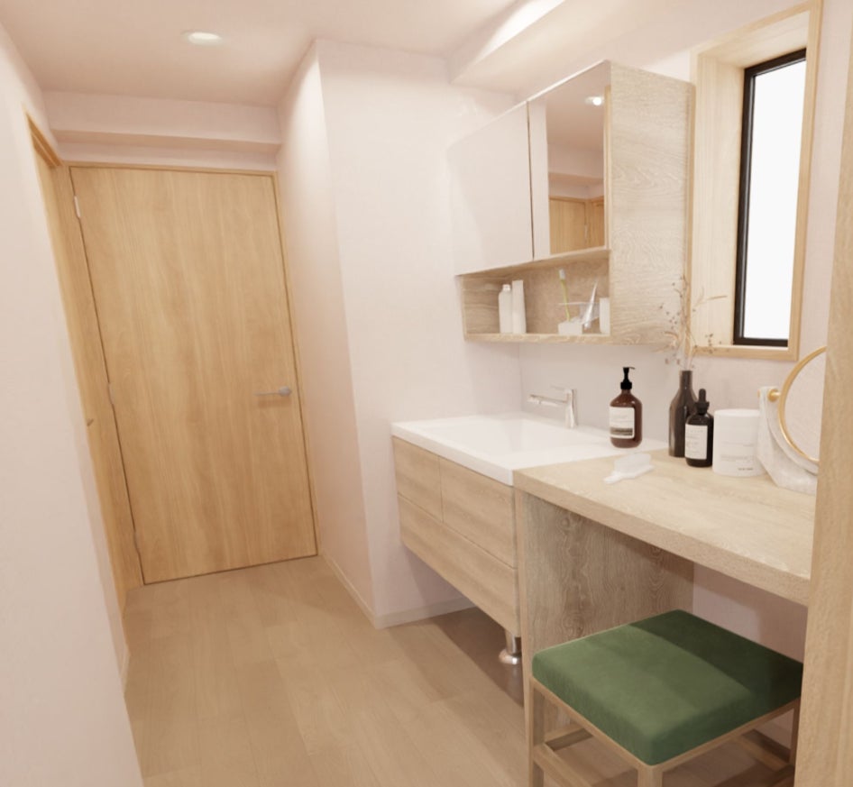 広さに余裕のあるスペースで、朝夜の支度を快適に。