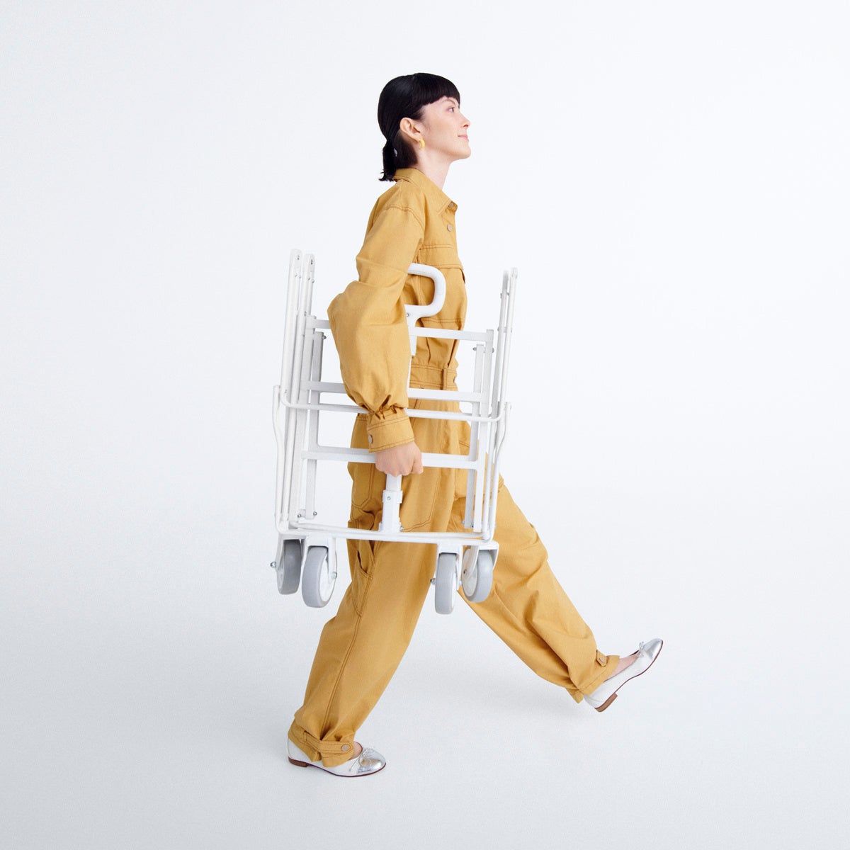 女性一人でも扱いやすい約7.8kgの軽量設計を実現し、移動や車への積み込みもスムーズに。 また、あえて小回りのきく小型タイヤを採用することで、人混みや狭い道でもスムーズな操作が可能に。日常での軽やかな使い心地を目指しました。