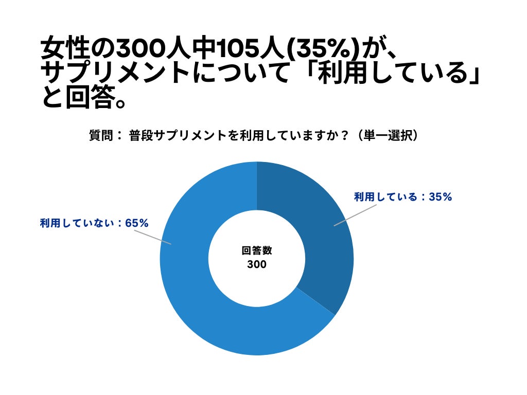 女性の300人中105人(35%)が、サプリメントについて「利用している」 と回答【サプリメントに関するアンケート】