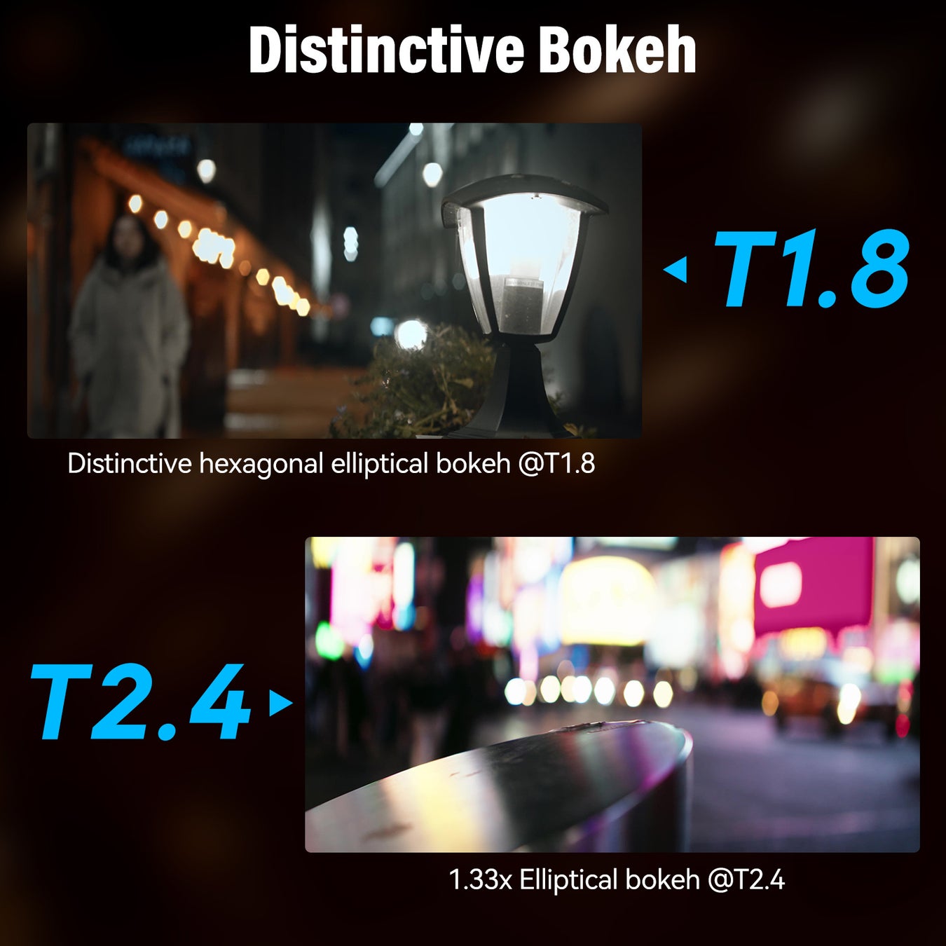 特徴的なボケ表現、T1.8で六角形の楕円ボケ、T2.4では美しい1.33x楕円ボケが楽しめる!
