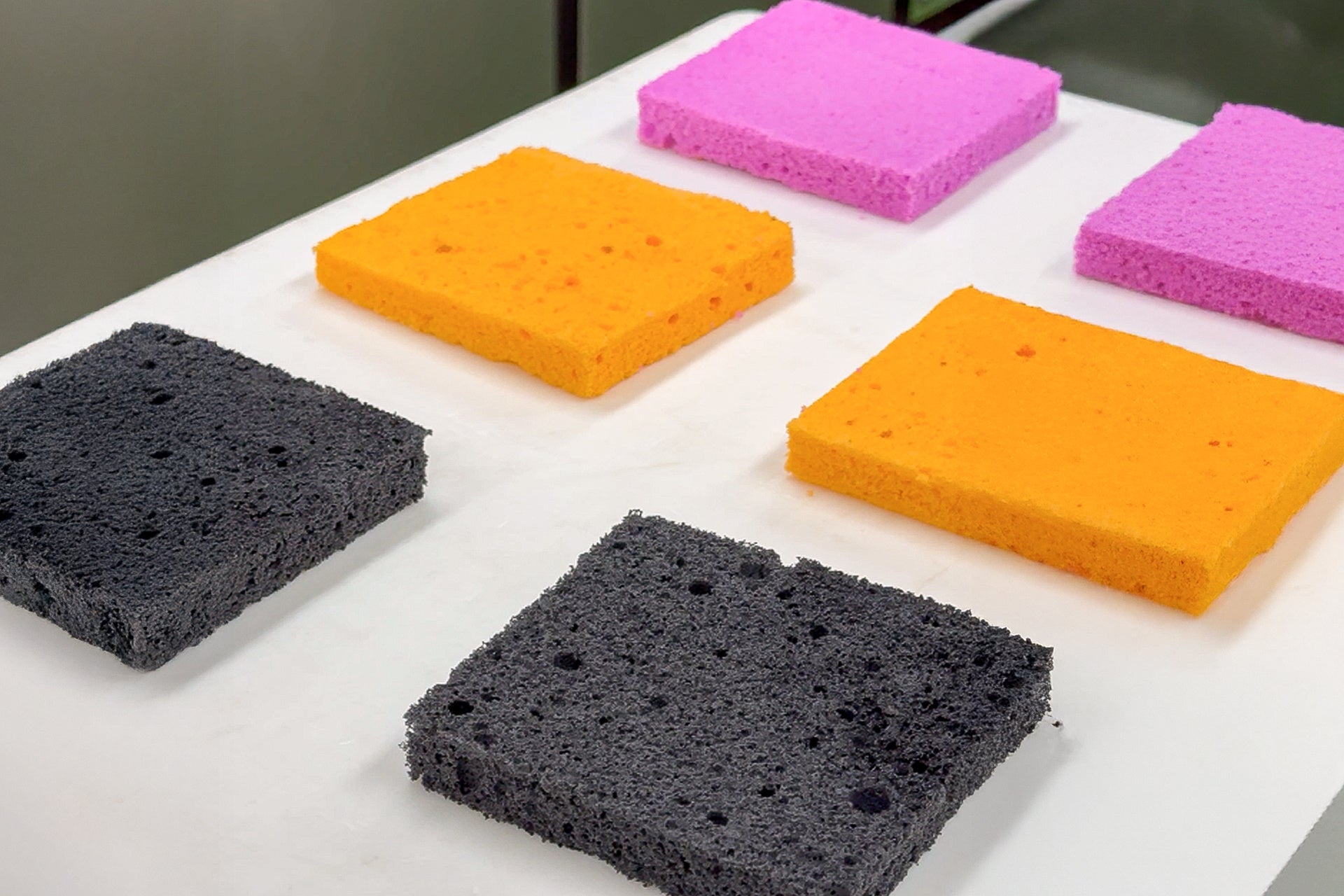 とにかくインパクト大の真っ黒シフォンは、竹炭を練り込んだ贅沢仕様。