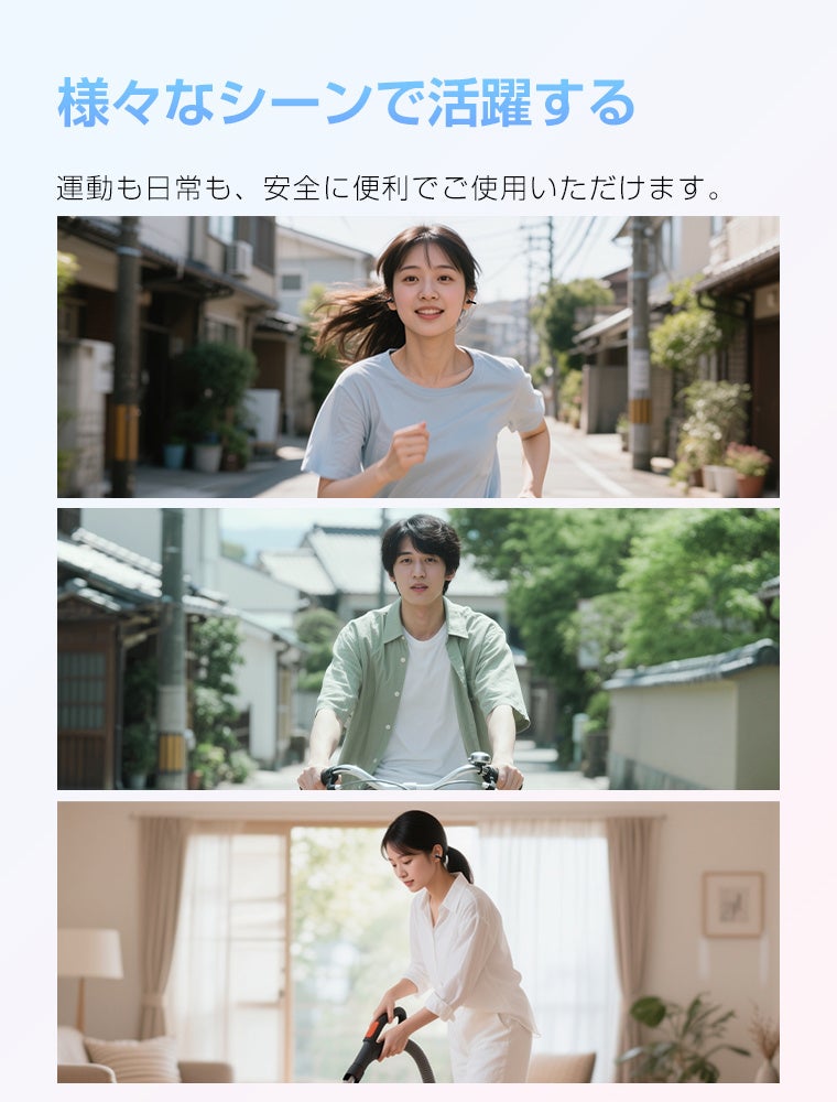 耳の形や大きさを選びにくく、多くのユーザーにフィットしやすいため、通勤・通学、在宅ワーク、オンライン会議、ウォーキングなど、幅広いシーンで快適に使用できます。