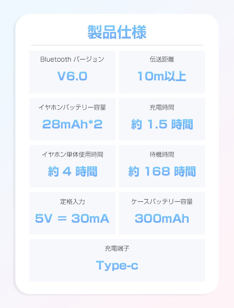 最新規格のBluetooth 6.0に対応し、安定した接続性と省電力性能を実現。