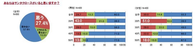 「サンタはいると思う」20代が最も多く、20代女性では5割超!