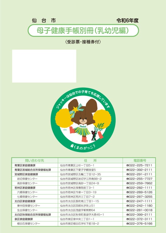 その一環として、このたび、仙台市の母子健康手帳に絵本「くまのがっこう」の主人公であるジャッキーが登場するほか、ジャッキーのデザインマンホールを設置します。