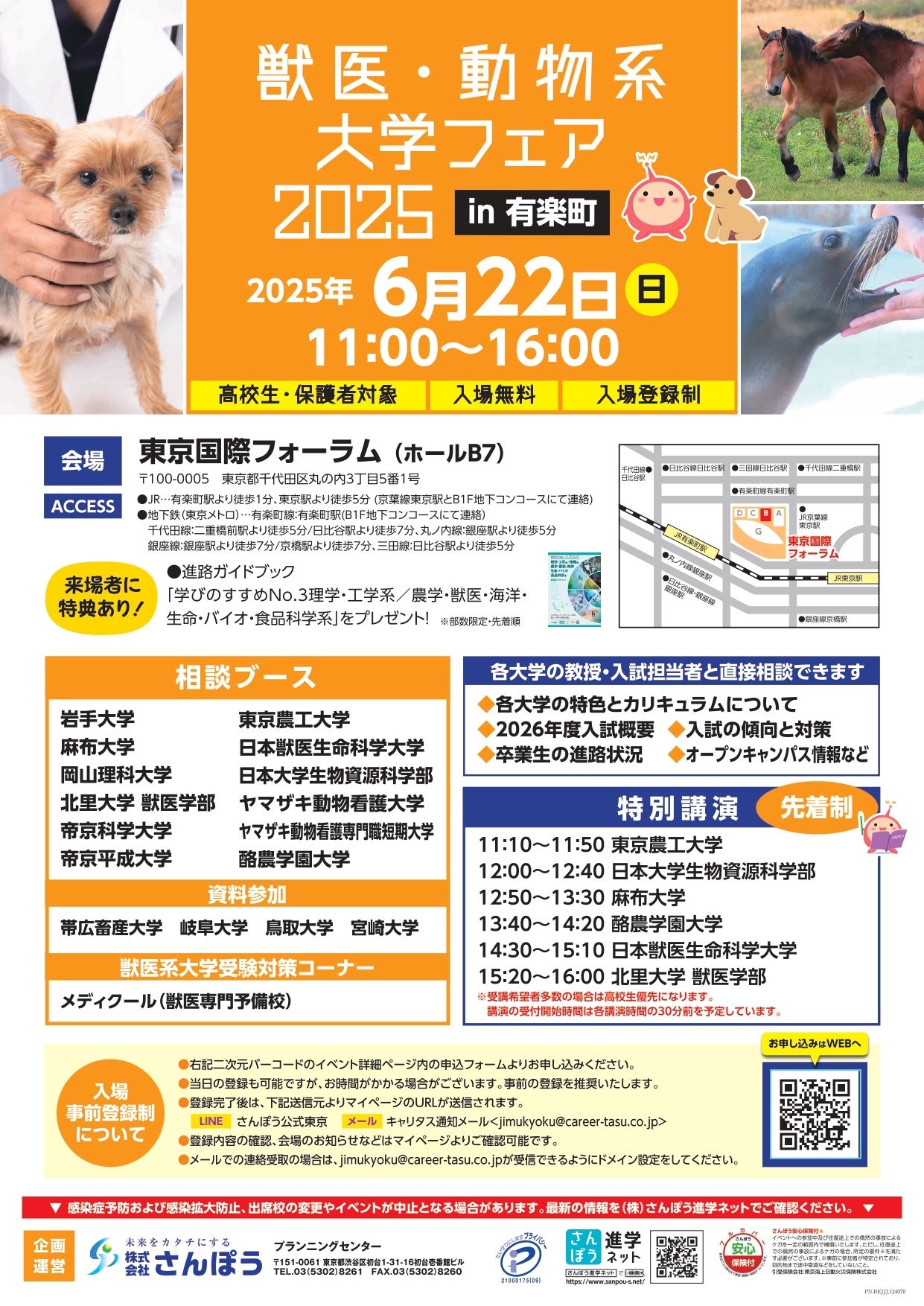 6/8(日)【池袋】食物・栄養・食品科学系/医歯薬・看護・医療技術系/体育・スポーツ・健康系大学フェア+ 6/22(日)【有楽町】獣医・動物系/生物資源・生命バイオ・海洋系/理・工・理工学系大学フェア