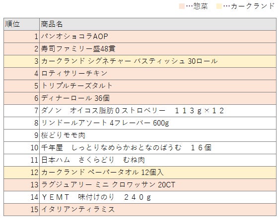 コストコデビューした人たちは、オリジナルのお惣菜やパンなどを購入する傾向があり、ヘビーユーザーはコストコの強みである大容量のアイテムを購入していることがわかりました。