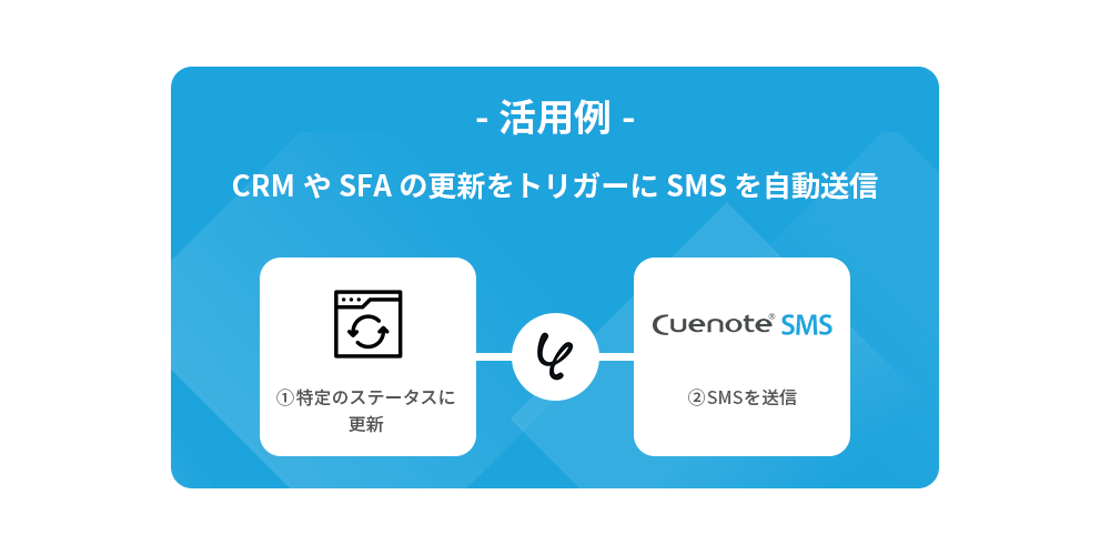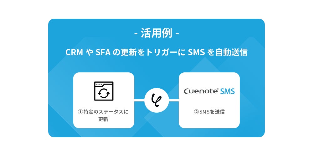 顧客管理ツールなどの情報が任意のステータスに更新されたことをトリガーに、SMSを自動送信します。
