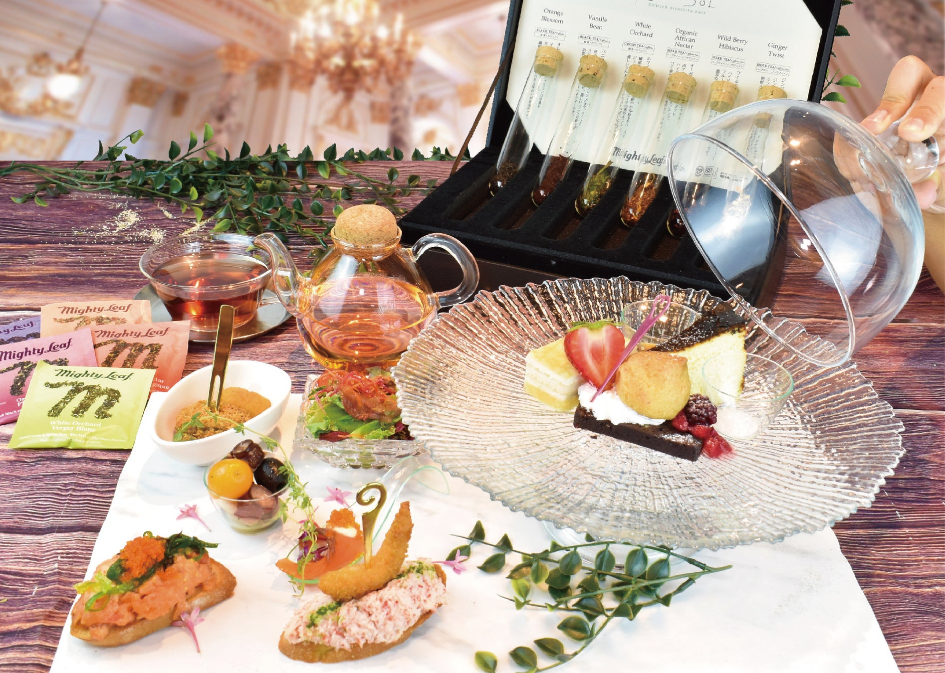 サンフランシスコ発のティーブランド「マイティーリーフ」。 品質の⾼い茶葉やハーブを使⽤したその美味しさが話題となり、世界の名だたる⾼級ホテルでも愛飲されてる紅茶です。⾹り⾼いマイティーリーフと美味しいスイーツのマリアージュをお愉しみいただけます。