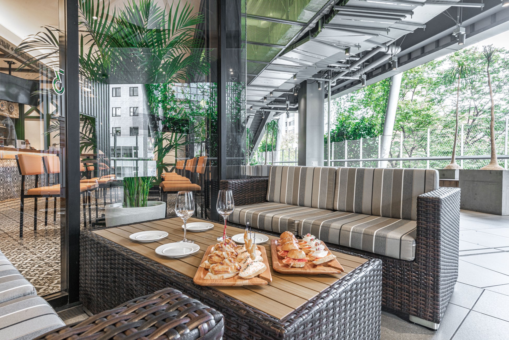 ゆっくりとくつろぎやすいソファ席も新たに導入いたしました。自然を感じさせる店内空間と、そよ風が心地よい開放感あふれるテラス席で美味しいピンチョスをお召し上がりいただけます。