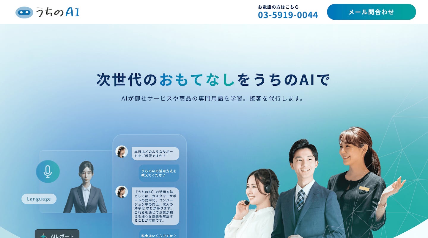 AI接客アバターチャットボット『うちのAI』: Webサイトや施設など様々な場所で24時間365日顧客対応や案内、提案を行う「AI社員」を作成可能