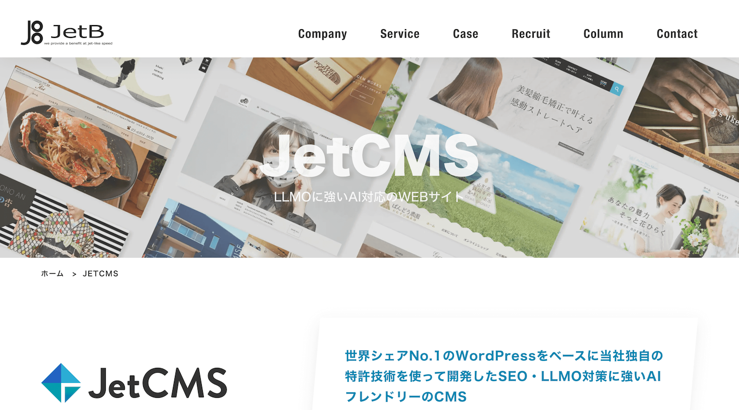 LLMOに最適化されたCMS『JetCMS』: CMSの基礎部分にはWordPressを利用し、特許関連技術を付加することで、集客力の高いサイトを構築