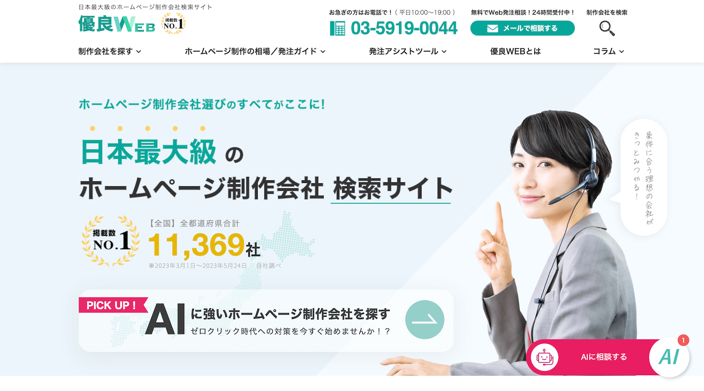 日本最大級のAXマッチングサイト『優良WEB』: 条件に合う制作会社の検索やAI発注相談コンサルタントへの無料発注相談など様々な機能/サービスを提供
