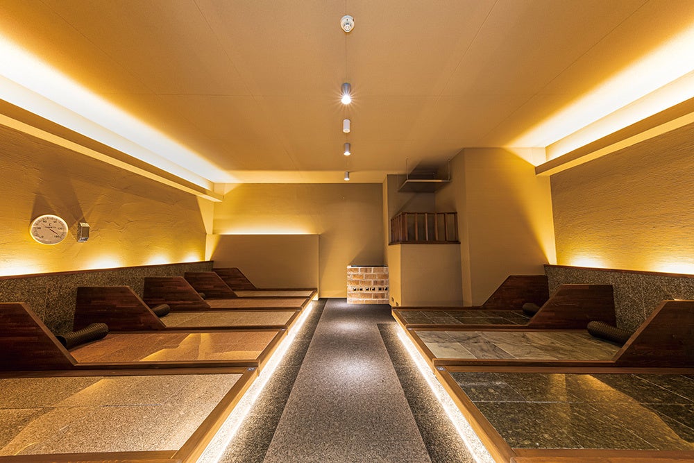 女性用サウナエリアにはドライサウナに加えて岩盤浴を設置。岩盤浴では体の内側から温まり、新陳代謝の活性化やデトックス・美肌効果が期待されます。