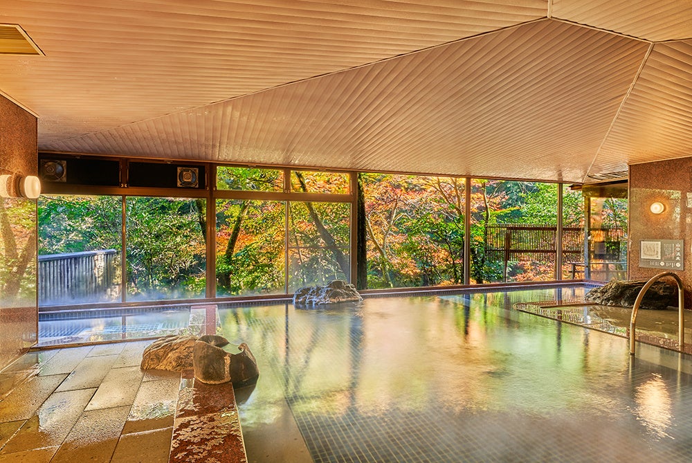 男性用・女性用のドライサウナルームは北陸随一の渓谷美を誇る鶴仙渓を臨み、窓の向こうに広がる開放的な景色を眺めながら入浴を満喫していただけます。