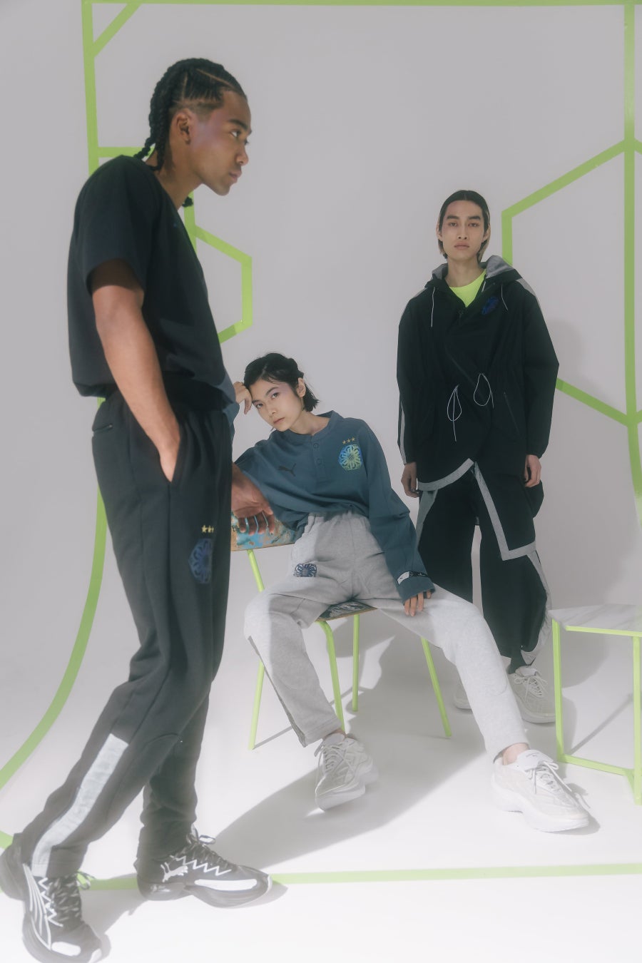 「PUMA x ANREALAGE」コレクションは、プーマが持つサッカーのカルチャーとANREALAGEのDNAである変形フォルムや変色テクノロジーを融合、進化させたことにより生み出されたコレクションです。本コレクションでは、ANREALAGEが追求し続けているテクノロジーと洋服の融合をプーマのDNAに沿って表現しています。