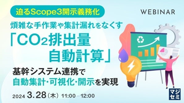 ・ テーマ:【迫るScope3開示義務化】煩雑な手作業や集計漏れをなくす「CO₂排出量自動計算」 ~基幹システム連携で自動集計・可視化・開示を実現~