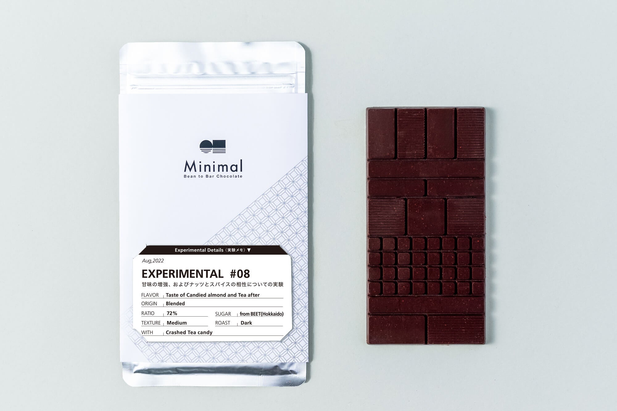 Minimalより1年に5回のみ発売の数量限定の特別な板チョコレート、実験的シリーズ「EXPERIMENTAL」の第8弾が9月10日発売。紅茶キャンディーを加えた豊かな余韻を楽しむ1枚。