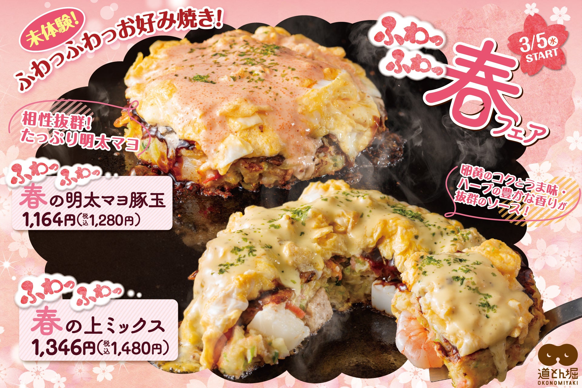 お好み焼きチェーン「道とん堀」を展開する株式会社道とん堀(本社:東京都福⽣市、代表取締役:稲場裕幸)は、春の期間限定「”オムレツのっけ”お好み焼き」を2025年3月5日(水)より、全国の店舗で新発売いたします。