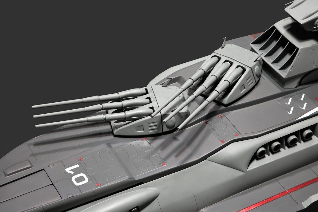 ヒュウガのベースとなったドレッドノート級の波動砲。ライフリングのディテールと発光&音声ギミックにより劇中同様の発射シーンが楽しめます。