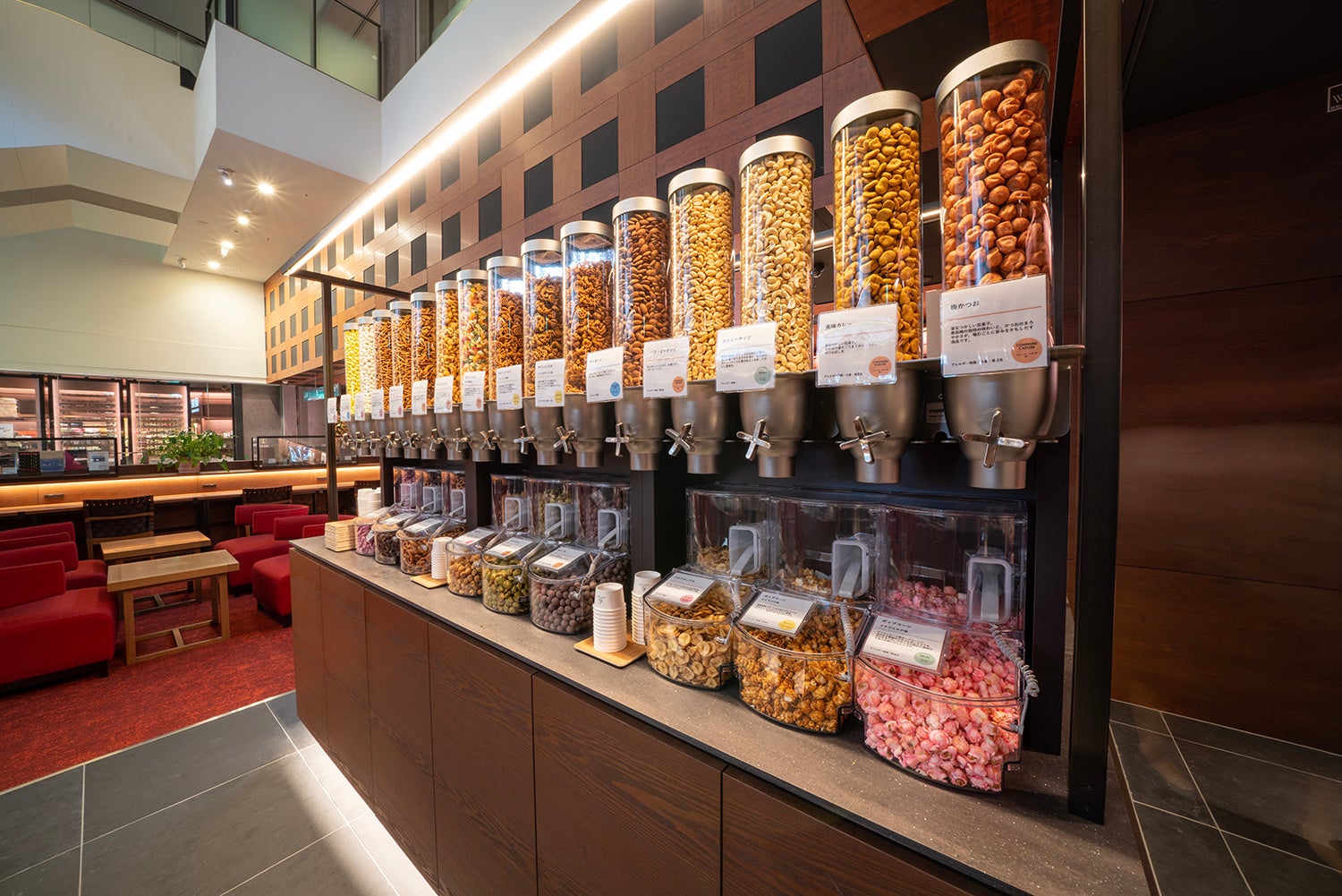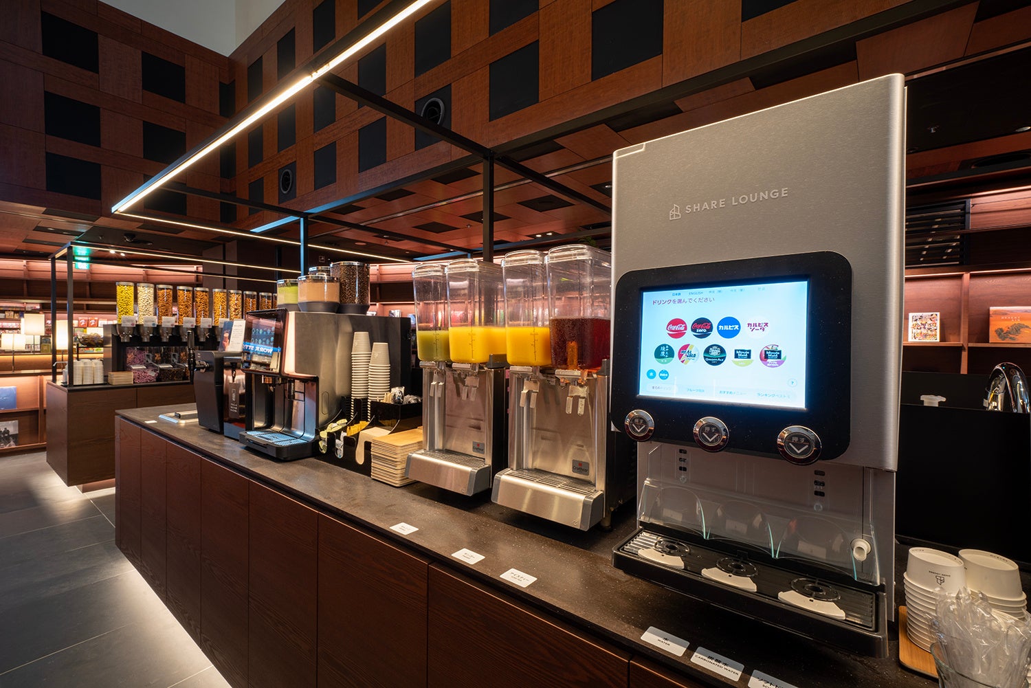 約80種類以上のジュースやコーヒーなどのドリンクや、約70種類のナッツやスナック、ソフトクリームなどのフードをお好きなだけお楽しみいただけます。
