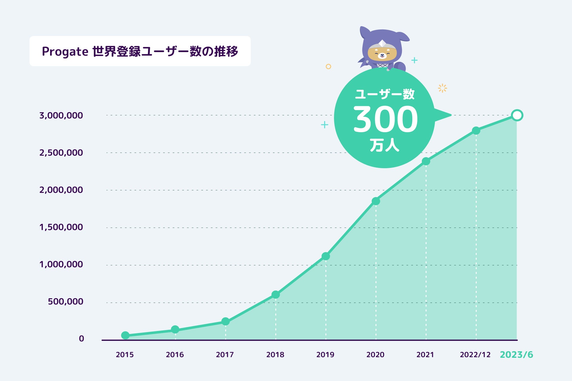 Progateは全世界の合計登録ユーザー数が2023年6月に300万人を突破し、多くの方にプログラミング学習の第一歩を踏み出す機会を提供することができました。
