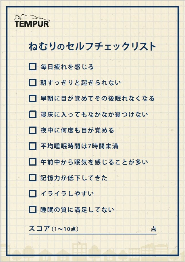 お近くのショールームで、「ねむりのセルフチェックリスト」による睡眠診断をお試しください。