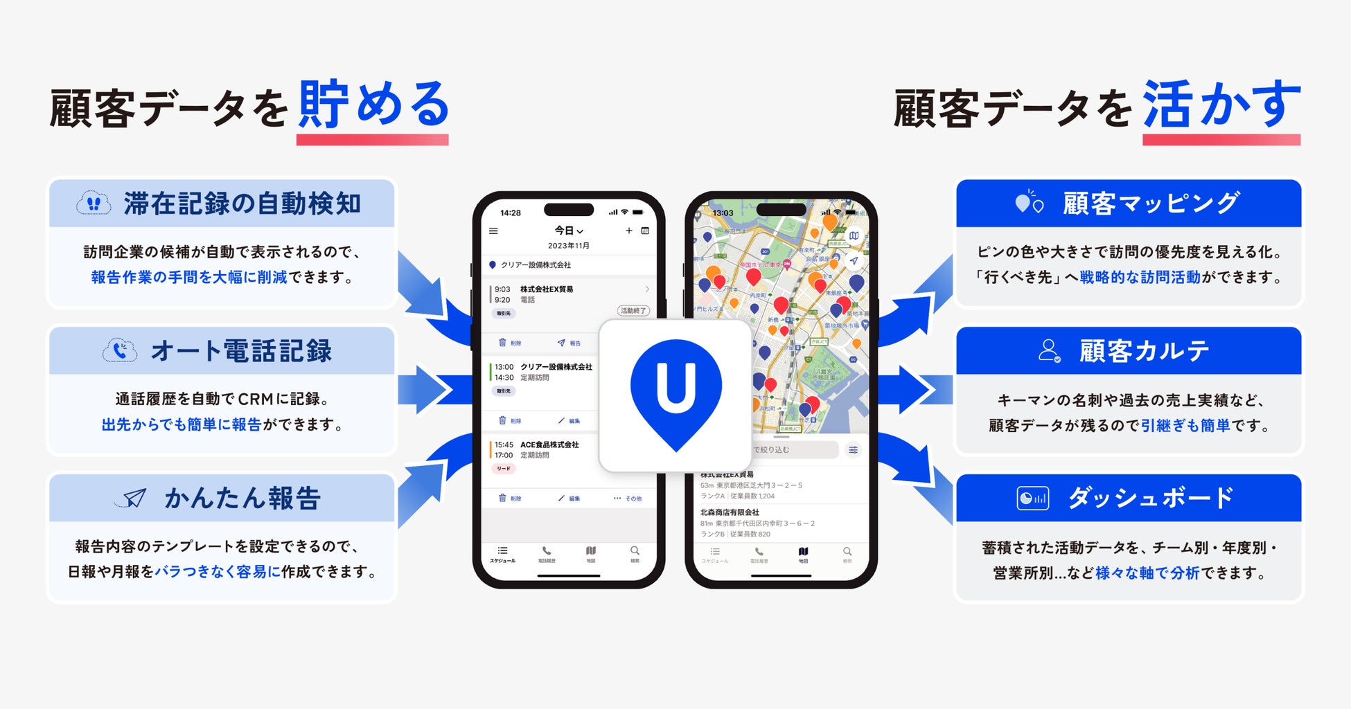 UPWARD AGENTは、“営業活動の報告作業におけるストレスを解消する”モバイルアプリです。訪問先や滞在時間を自動記録機能により外回り・訪問営業担当者の報告作成の負荷を大幅に軽減します。さらに、作成された報告データは適切に蓄積され、企業の貴重な資産として活用されます。