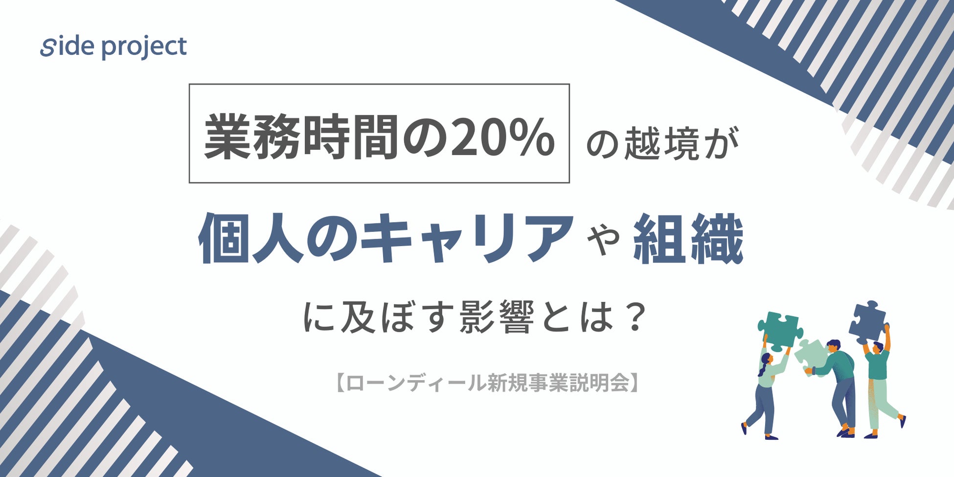 株式会社ローンディールは「日本的な人材の流動化」をミッションとして掲げています。今回の「side project」では年間1,000人の方に社外経験の機会提供を目指します。すでに展開している「レンタル移籍」「outsight」そして「side project」など、さまざまな事業を通じて新たな人材流動・越境機会の選択肢を提示し、個人の働きがい・大企業の人材育成や風土改革・ベンチャー企業の事業成長に貢献してまいります。