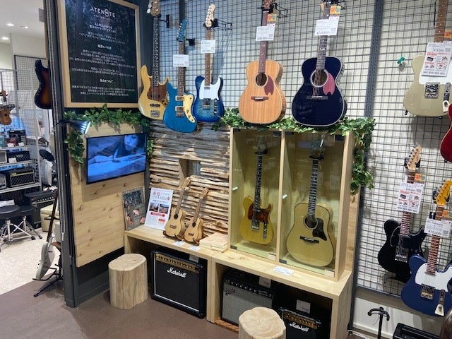今回の新設ブースは、丸太から楽器が出来上がるまでの一連の流れがわかるよう意識して製作しています。現在はアコースティックギターやエレキギター、エレキベースなどラインアップも豊富になりました。楽器愛好家の方々にも私たちの想いが伝わることを願っています。(金沢フォーラス店担当ブロックマネージャー 越野)