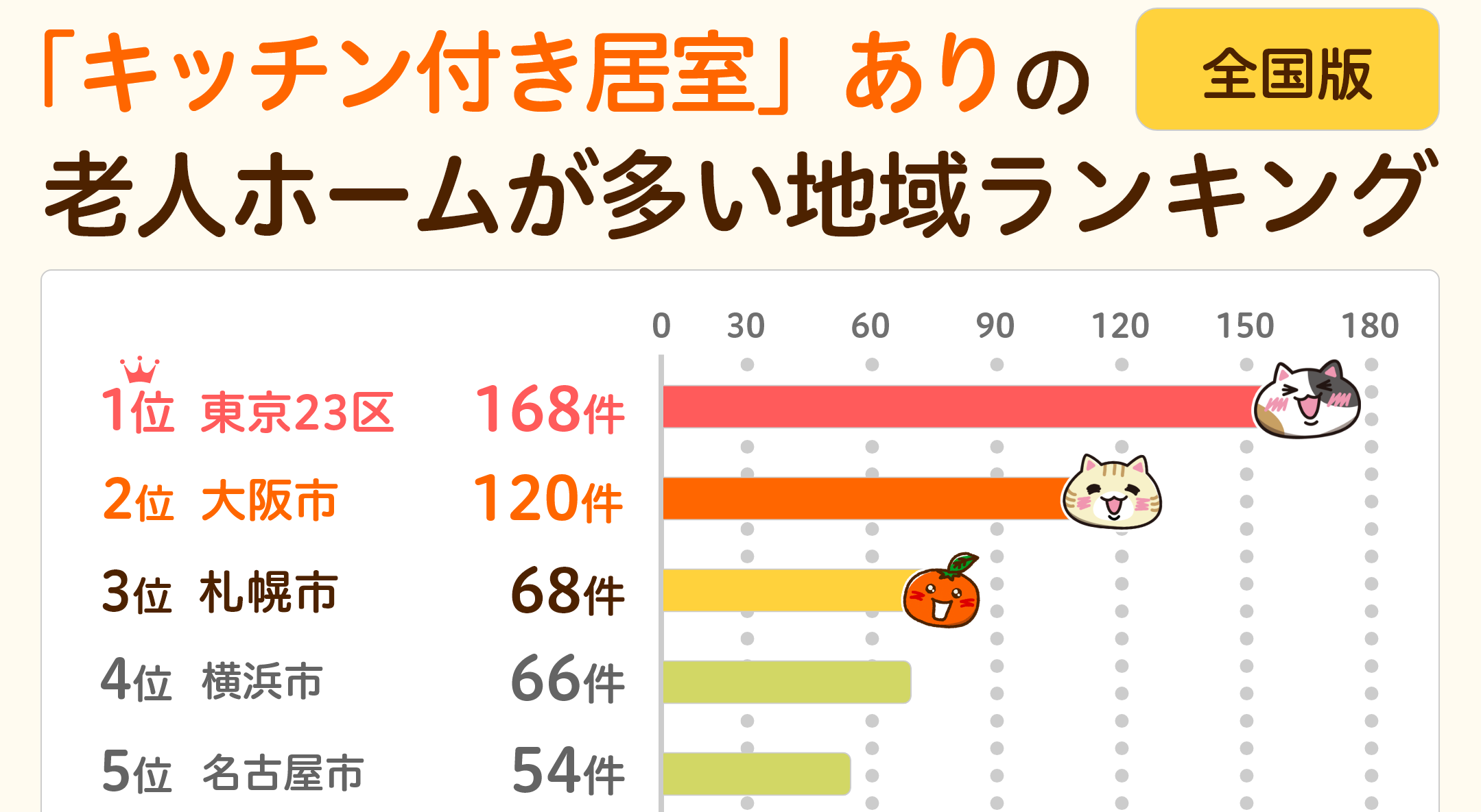 【みんなの介護】「キッチン付き居室あり」の老人ホームが多い地域ランキング