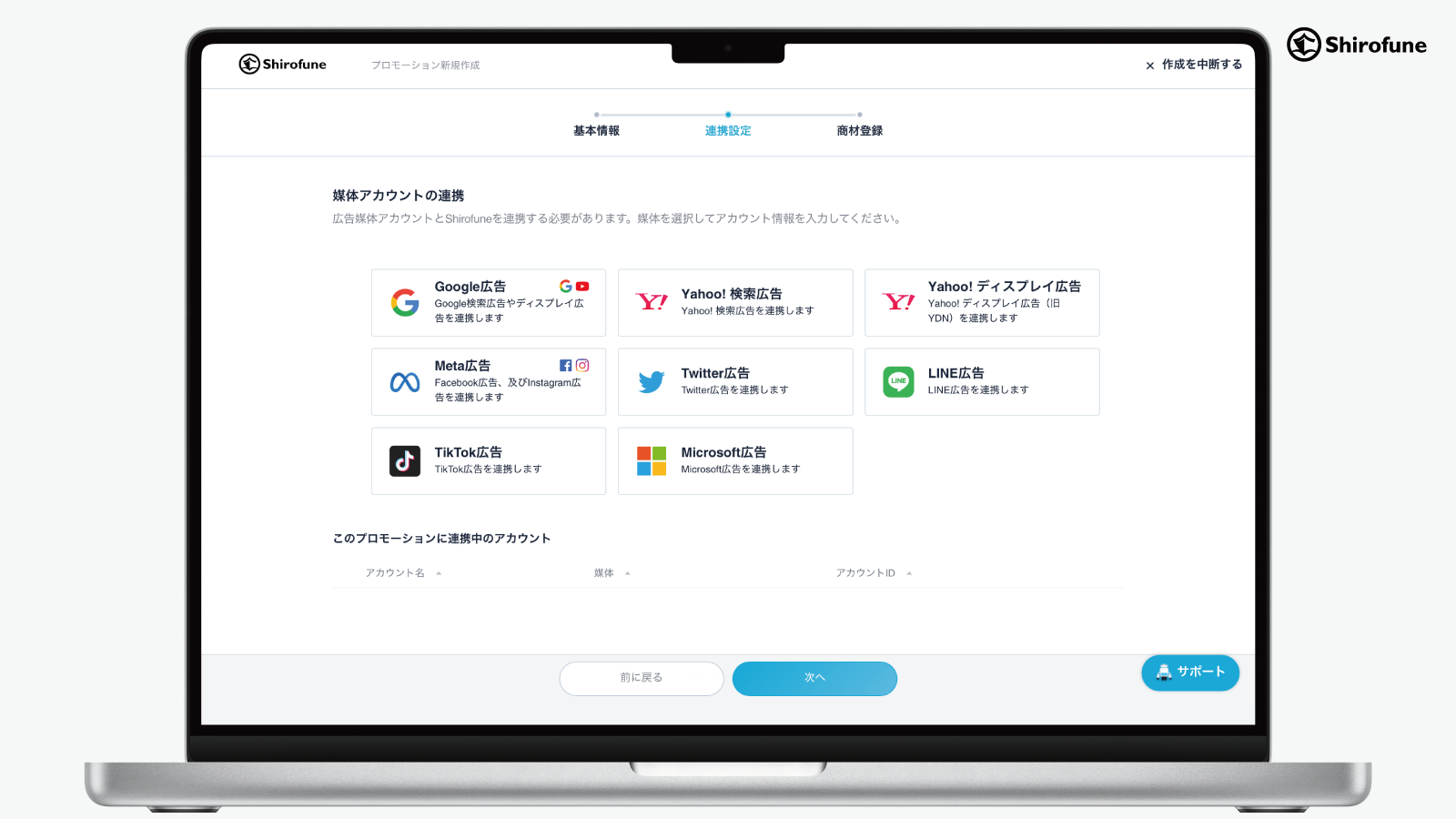 ※新規広告セットアップ機能は未対応につき、媒体の管理ツールで設定する必要があります。