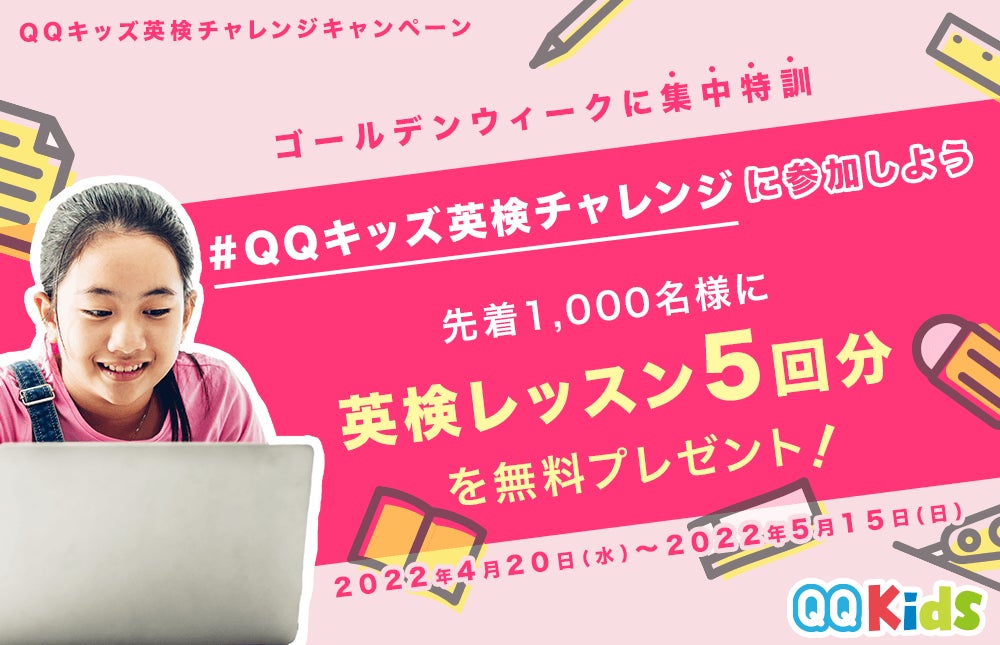 QQキッズでは、実用英語技能検定の2022年度第1回検定に向けて学習される皆様を応援する「QQキッズ英検®️チャレンジキャンペーン」を2022年4月20日(水)から2022年5月15日(日)まで開催致します。