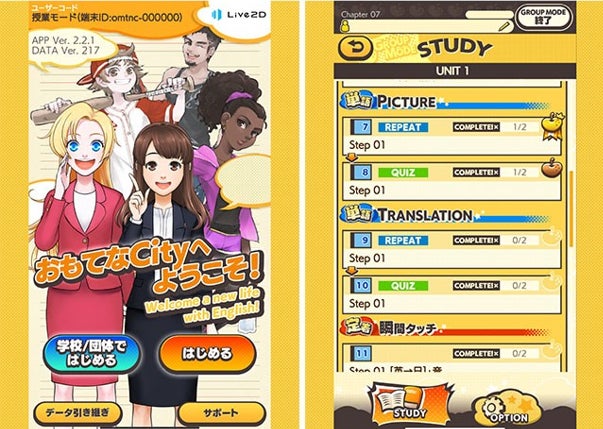 カルタ取りのように問題を聞きながら、正解の単語を選ぶ単語学習「瞬間タッチ」や、教科書に沿った学年別コンテンツで会話をシミュレーションできる「会話シミュレーション」など、豊富なコンテンツを取り揃え、まるでゲームをするような感覚で英語・英会話を自学できます。https://omotena.city/