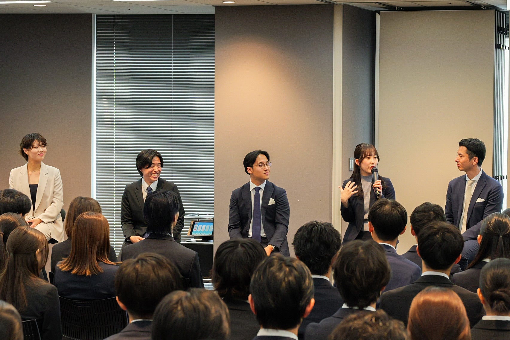 その後の懇親会では、特に若手社員が同席し、普段の働き方やキャリア形成について率直に語り合う場が設けられました。内定者からは「入社後の姿をイメージできた」「先輩社員と働くのが楽しみになった」といった声が寄せられ、不安を和らげながら社会人生活への期待を高める機会となりました。