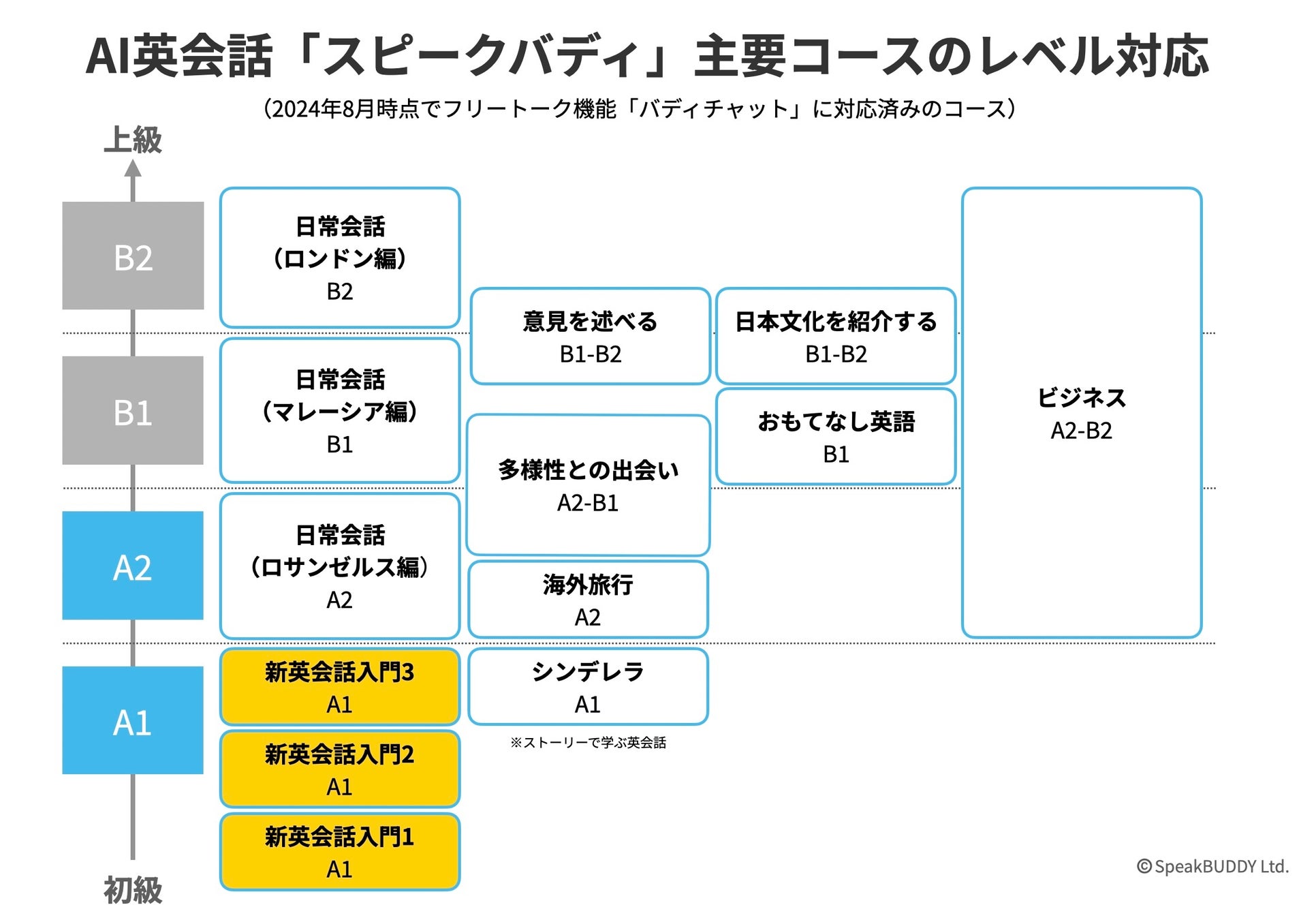 AI英会話アプリ「スピークバディ」の開発・運営を行う株式会社スピークバディ(本社:東京都中央区、代表取締役社長:立石剛史、以下「当社」)は、当社が提供する同アプリにおいて、入門コンテンツ(CEFR-J* A1レベル/TOEIC 120-220相当に該当する初級者向け)を全面的に改訂いたします。日本人学習者の85%にあたる初級者対応を強化することで、より幅広い層の言語習得をサポートすることを目的としています。