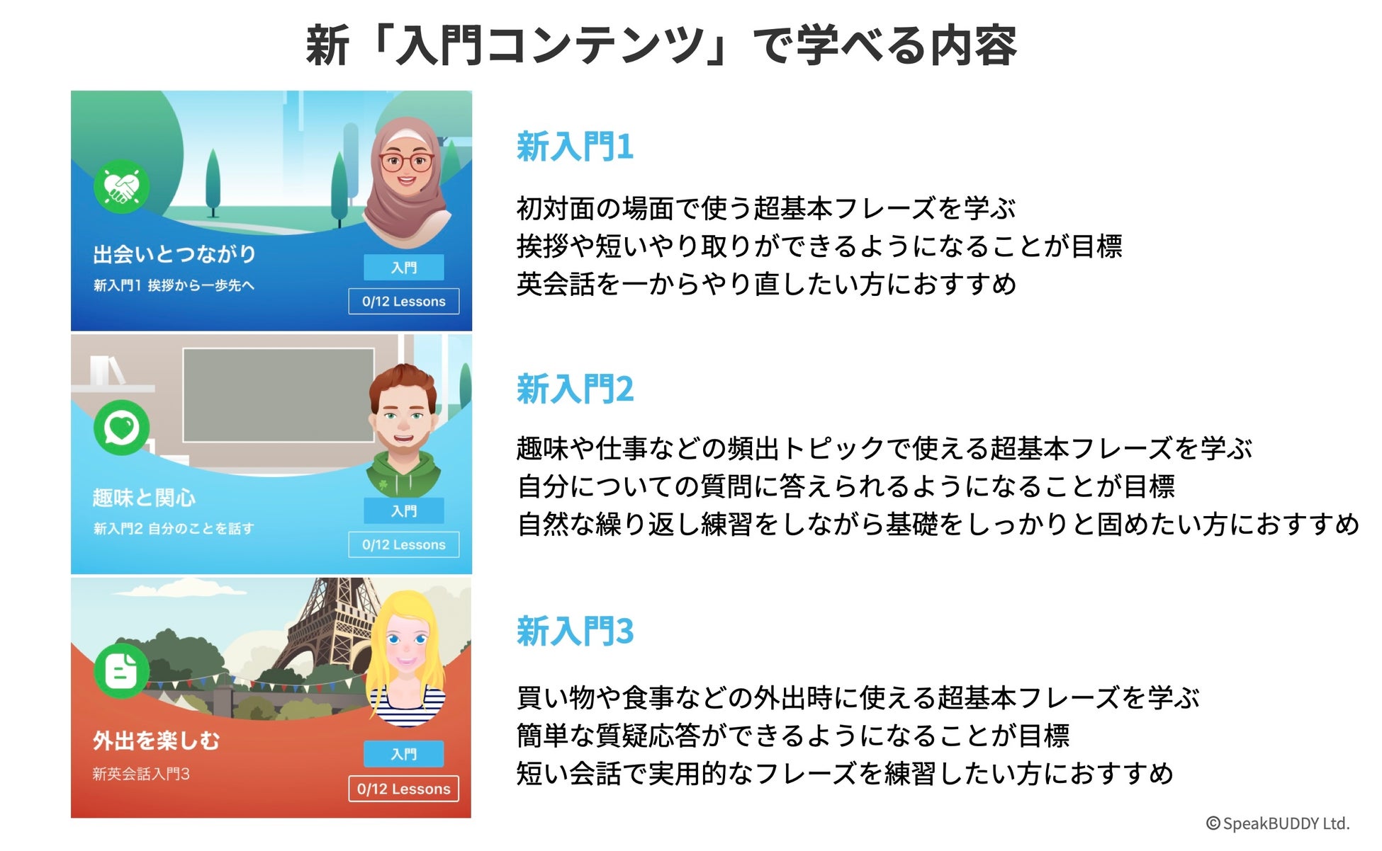 AI英会話「スピークバディ」、初級者対応を強化し、入門コンテンツを全面改訂
