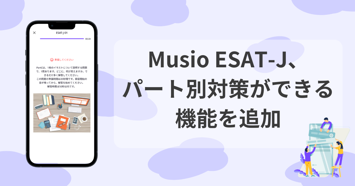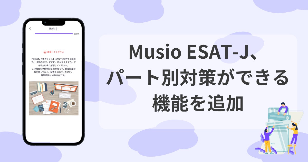 これに伴い、Musio ESAT-Jアプリの模擬テストでは、新事業者が出題する新しい出題形式にも対応できるようにしています。(プレスリリース:https://prtimes.jp/main/html/rd/p/000000090.000017199.html)