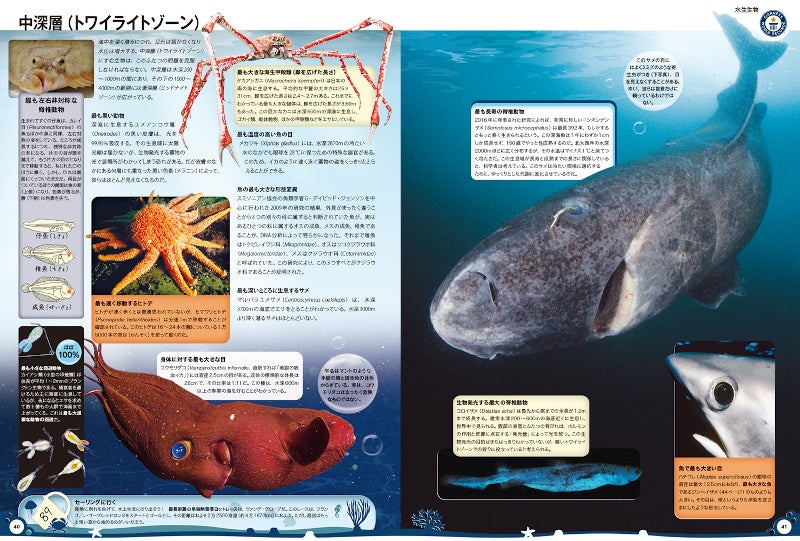 私たちの住む地球は大部分が水に覆われた“青い惑星”と呼ばれ、海洋は気候変動を緩和する極めて重要な役割も担っています。まさに神秘といえる海や水をテーマにしたさまざまな世界記録や、海の大型動物や超深海生物、温泉に永久凍土など、地球の水に関連する多様なデータを幅広く掲載しました。