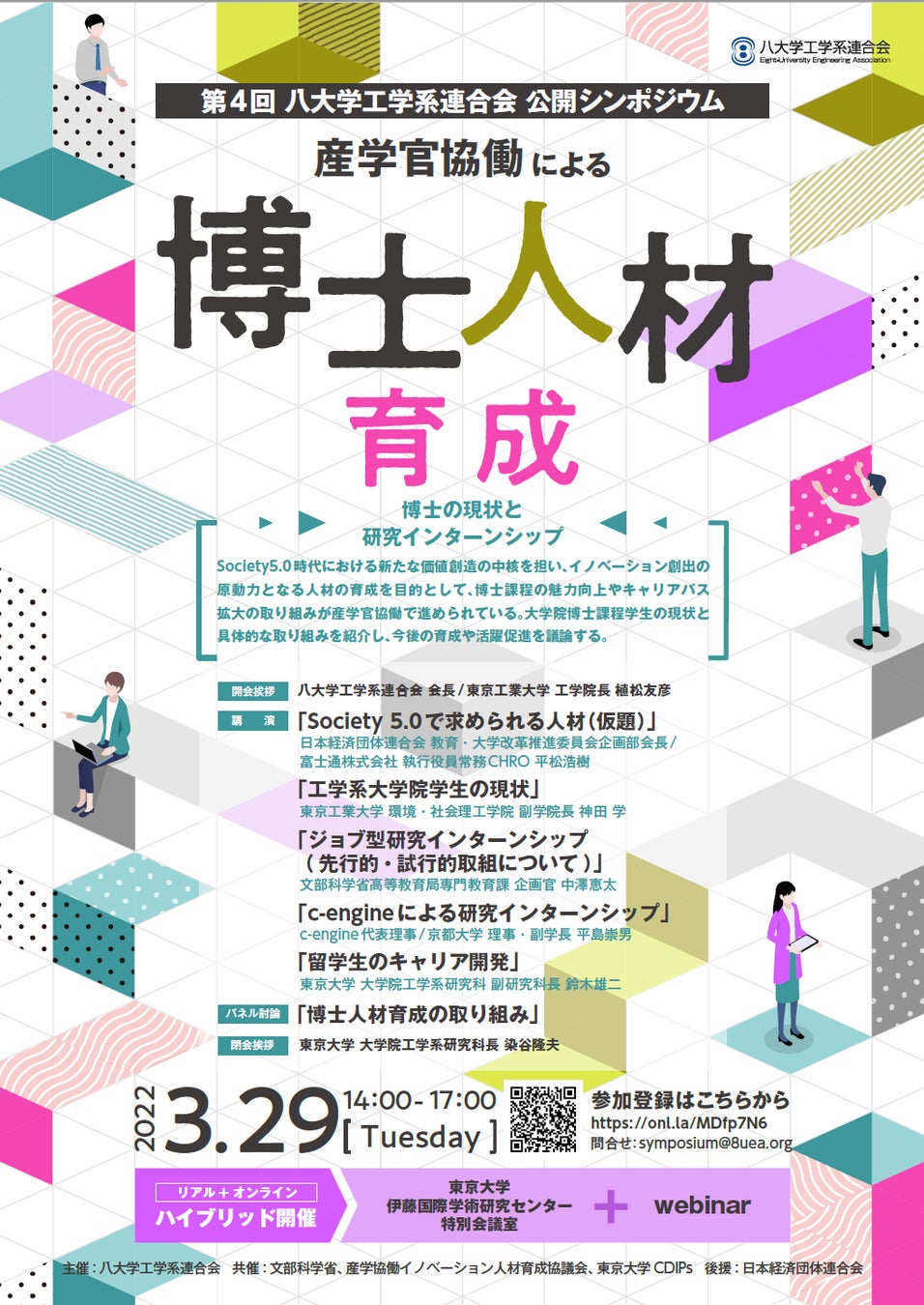 大学院生や研究者、技術者のキャリア支援に特化した事業を15年にわたって続けている株式会社アカリク(本社:東京都渋谷区、代表取締役:山田諒、以下 アカリク)は、2022年3月29日(火)に開催される八大学工学系連合会主催「第4回公開シンポジウム 産学官協働による博士人材育成 −博士の現状と研究インターンシップ−」にパネリストとして登壇します。パネル討論「博士人材育成の取り組み」には、本シンポジウムの登壇者や関係者が登壇し、博士人材育成に対する様々な取り組み事例について議論します。