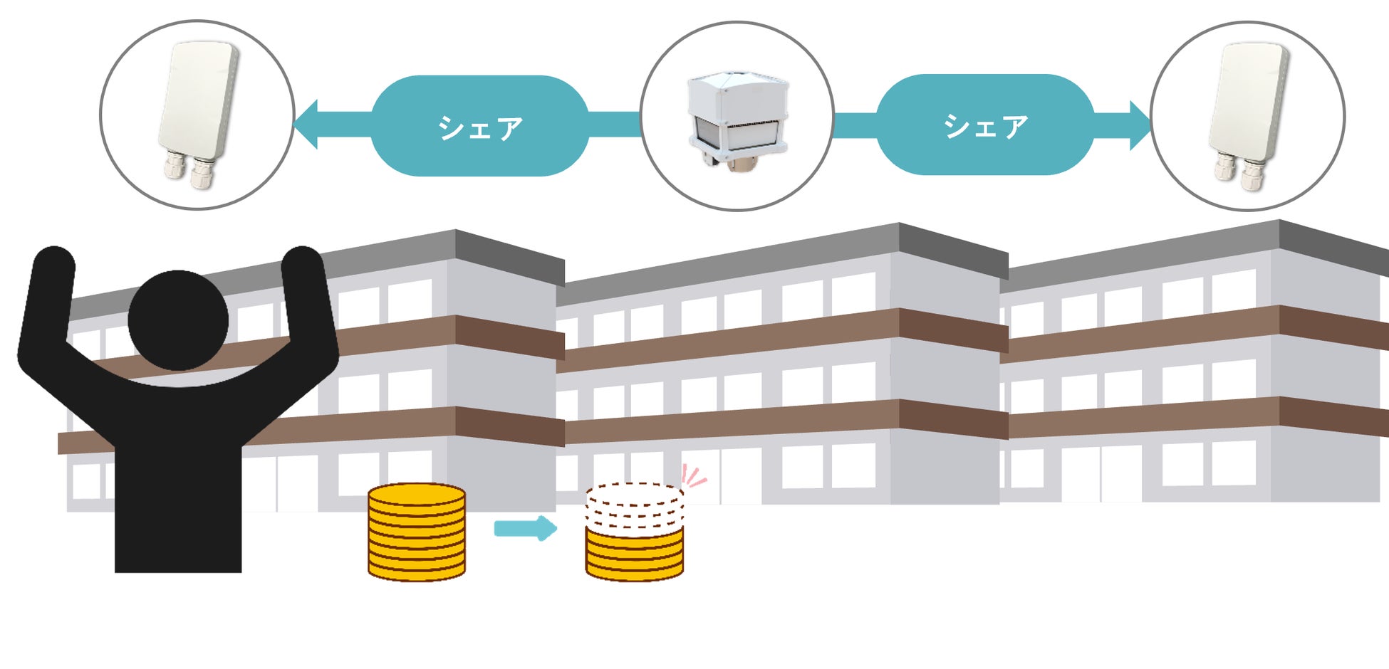 物件ごとに支払っていた月々の回線費用が1物件分になり、大きなコストカットに。またご自身以外が管理している物件へ回線をシェアすることで、収入源としてもご活用いただけます。
