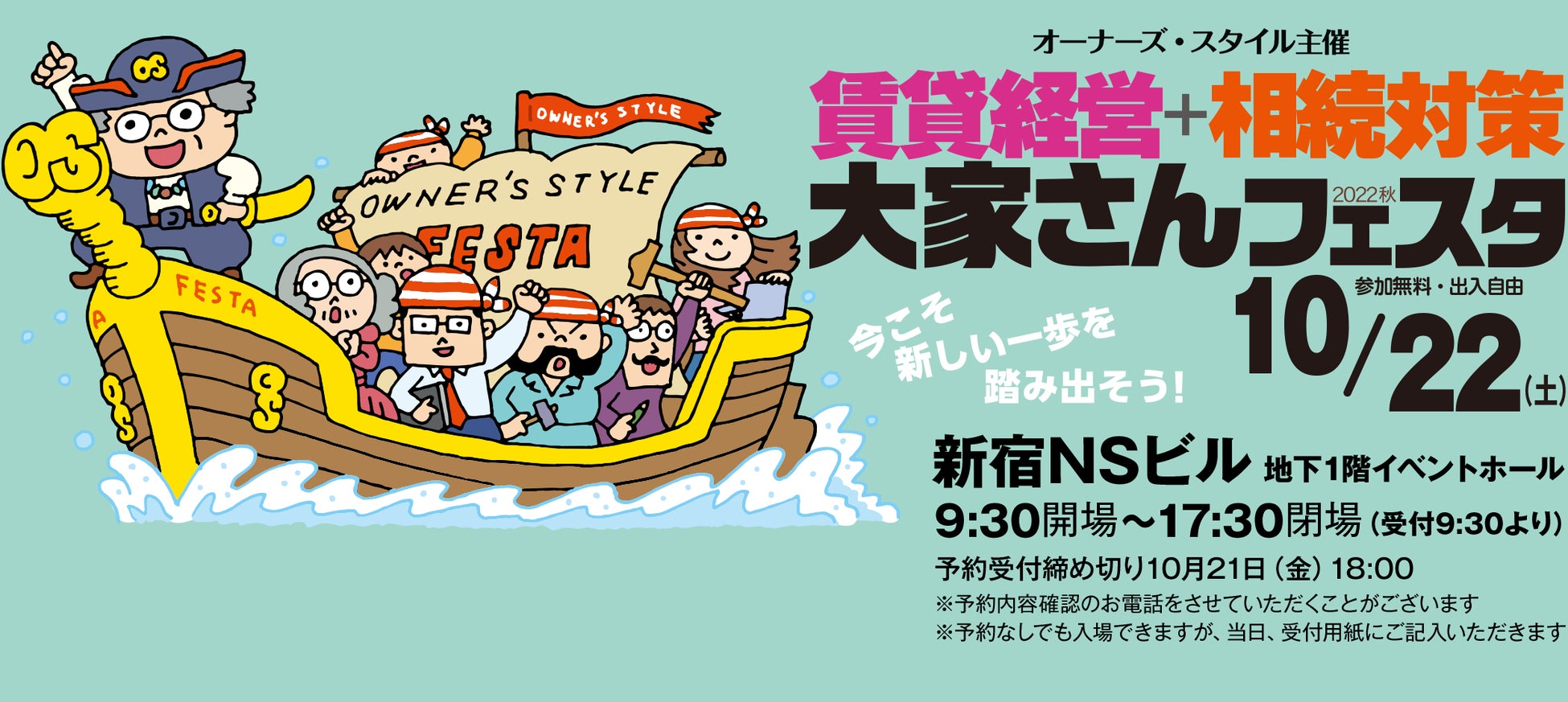 当社は、2022年10月22日(土)に新宿NSビルで開催される賃貸物件オーナー向け展示会「賃貸経営+相続対策 大家さんフェスタ」(主催:株式会社オーナーズ・スタイル)に出展します。
