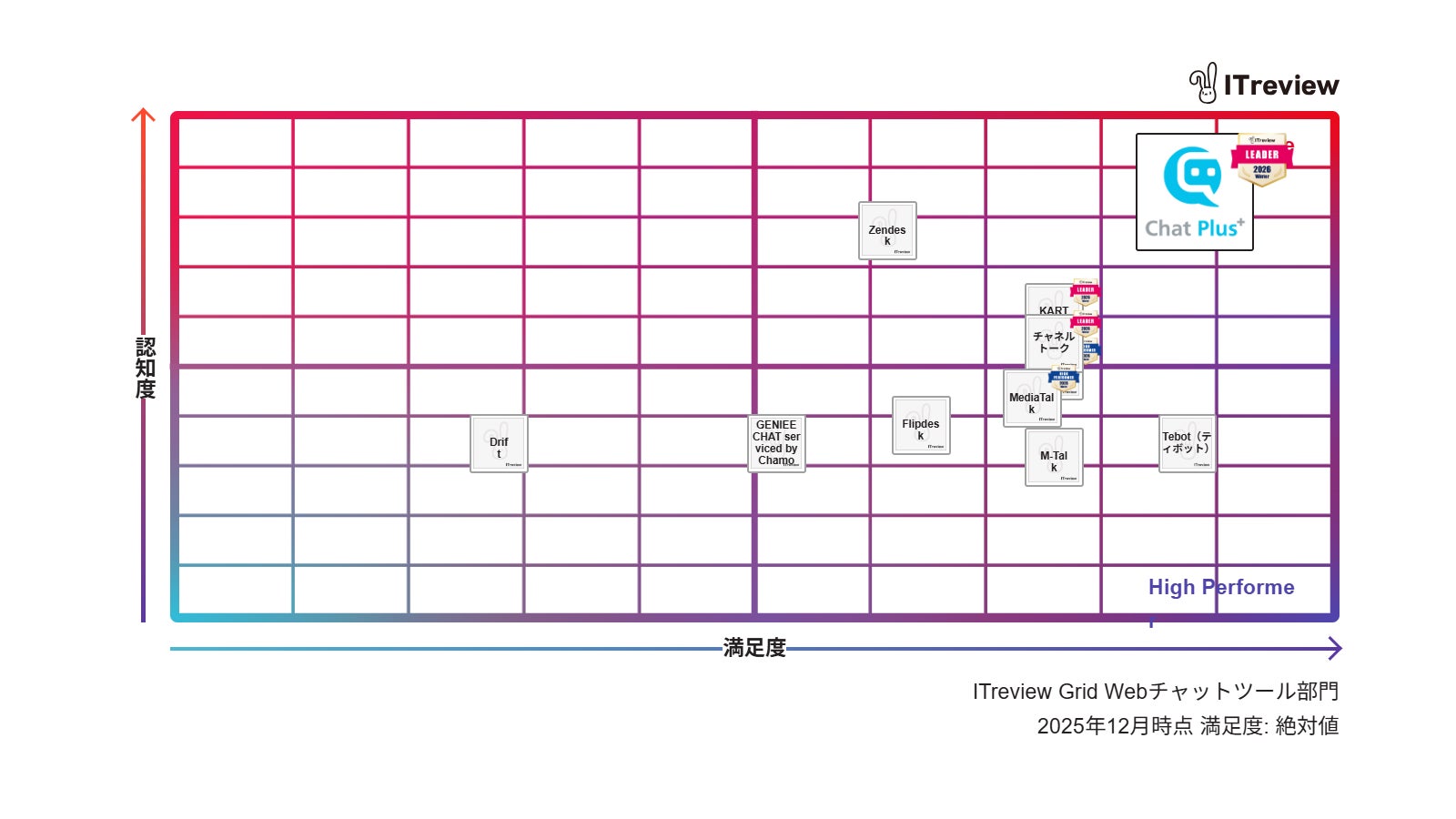 IT製品のレビューサイト「ITreview」において、チャットプラスが提供する「ChatPlus(チャットプラス)」は、「ITreview Grid Award 2026 Winter」にて4部門でLeaderを獲得し、通算26期連続の受賞を達成しました。