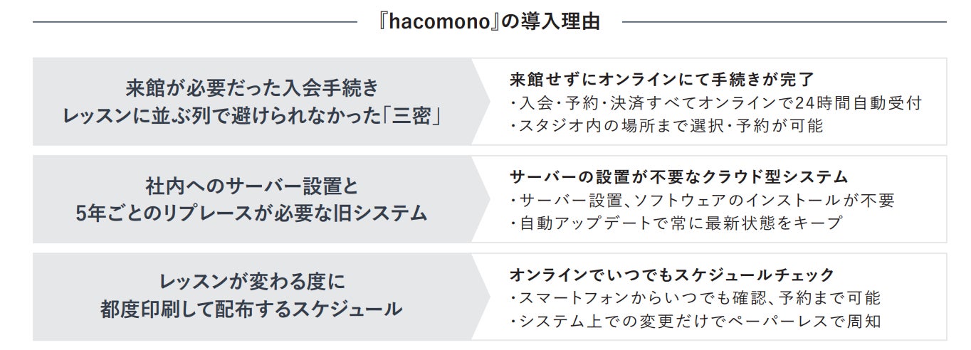 ドルフィン株式会社では以下のような課題から「hacomono」を導入し、スムーズな運営の第一歩を実現しました。