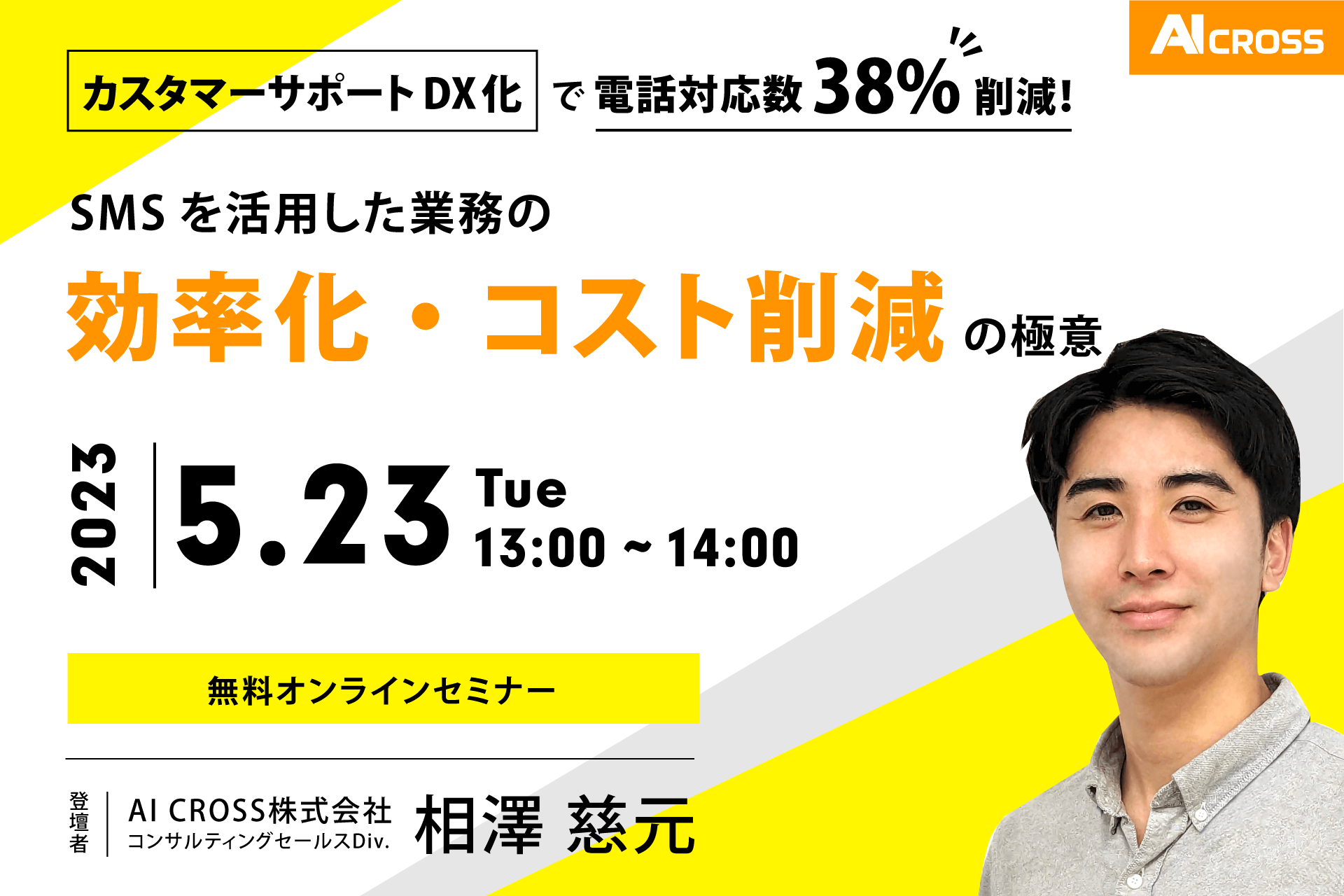 【無料オンラインセミナー】「カスタマーサポートのDX化で電話対応数38%削減!~SMSを活用した業務の効率化・コスト削減の極意~」を2023年5月23日13時より開催