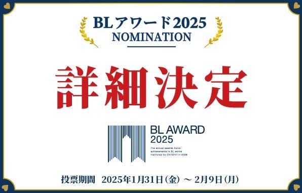 株式会社サンディアス(本社:東京都渋谷区、代表取締役:井出洋)が運営するBL情報サイト「ちるちる」は、「BLアワード2025」を開催いたします。「総合コミック部門」「シリーズ部門」をはじめとした漫画9部門、小説・BLCD各1部門に加え、今回弊社認定のBLソムリエが作品を選出する「BLソムリエ部門」を新設いたします。